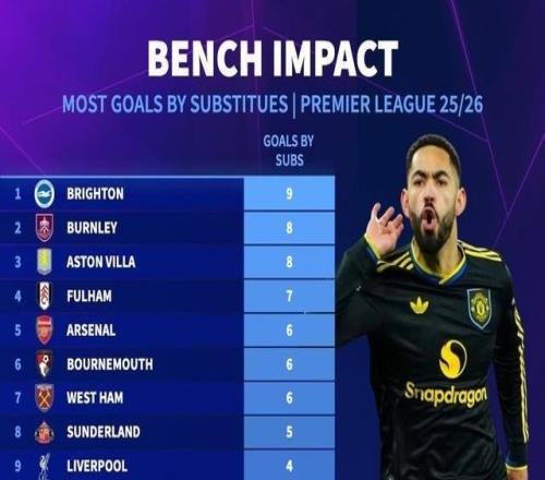 据德国转会市场网站统计,马特乌斯-库尼亚是本赛季英超首位替补登场取得进球的曼联球员。在马特乌斯-库尼亚对阵阿森纳打入制胜球之前,曼联是本赛季英超唯一一支替补球员没有进