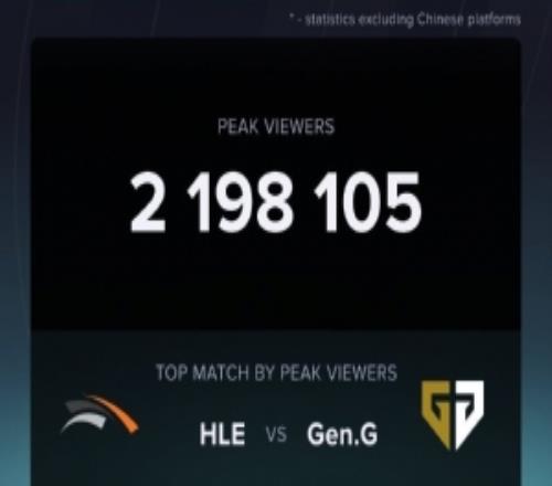 体育资讯10月28日报道宣称 据国外数据网站Esports Charts统计,GENvsHLE比赛的观赛人数达219万人(不包含国内平台)